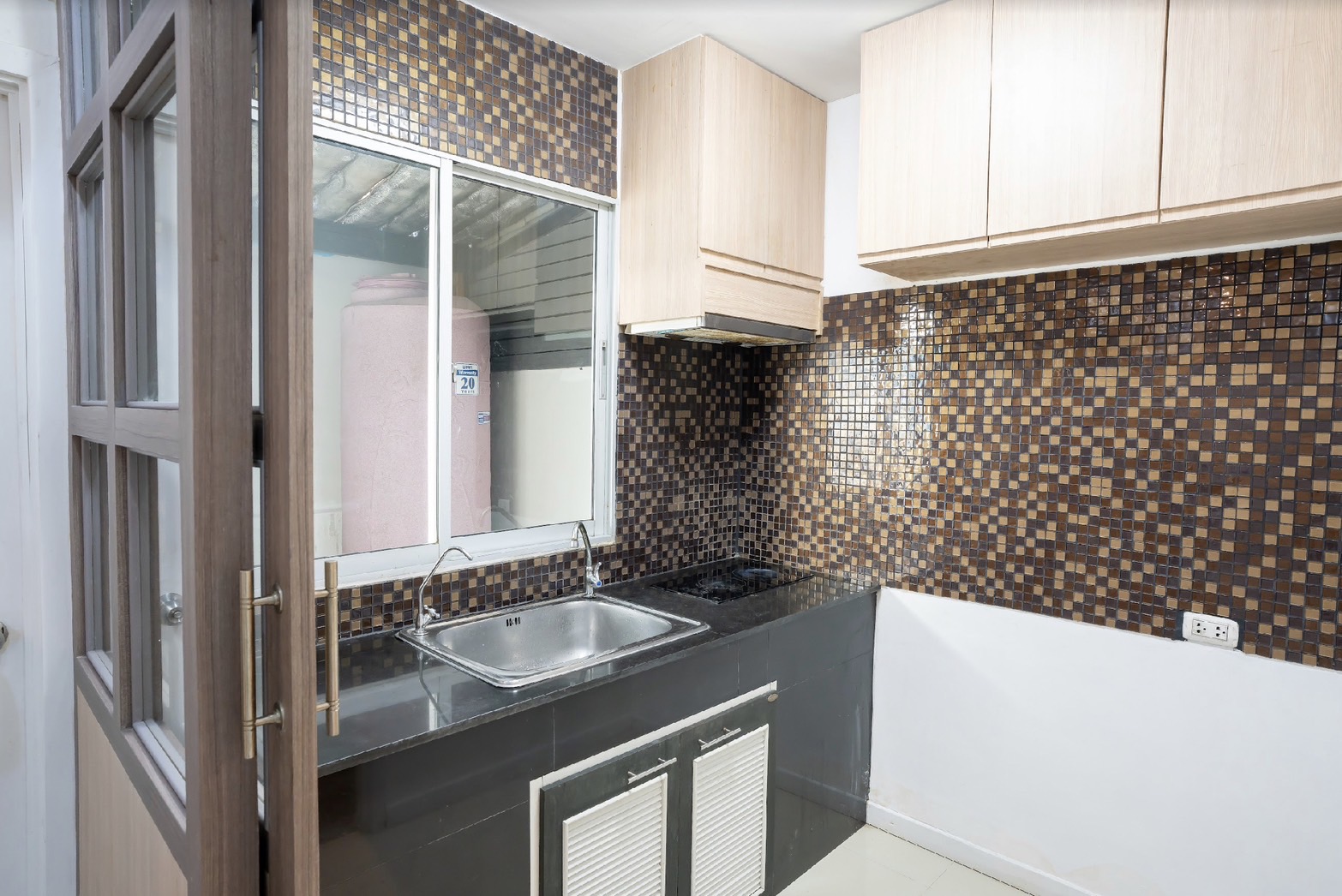 หลังบ้านมีพื้นที่ซักล้าง และหลังคาโปร่งแสง ตากผ้าได้แม้ฝนตก