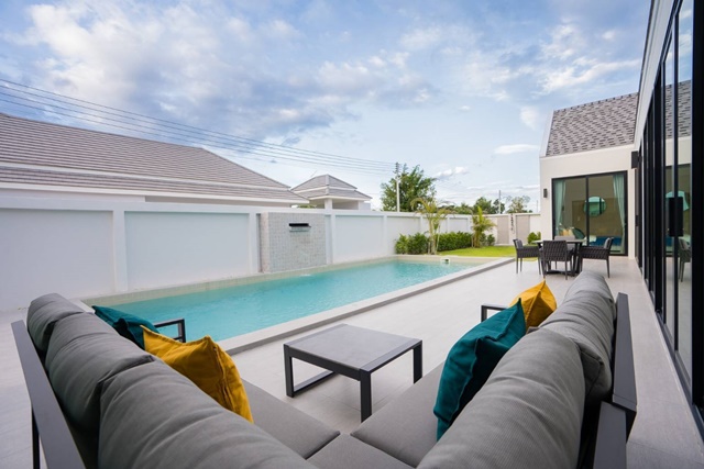บ้านพูลวิลล่าสุดหรู ตลาดน้ำหัวหิน ตระการตา 3นอน 4น้ำ สามพันนาม 1.7กม.จัดเต็มเฟอร์ สวนน้ำวานา อุทยานราชภักดิ์ 270 ตร.ม.68 ตร.วา.