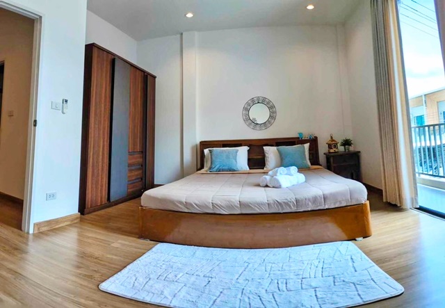 BTS Samrong 1.2 km. Imperial World Samrong 1 km. Best location beautiful house good value fully furnished 2-storey townhouse modern style nice to live in 4 bed 2 bath Thai Sikh International School 0.9 km. Excellent condition shady atmosphere 23 sq.w., 190 sq.m. 2 a/c Samrong Hospital 0.8 km. For rent 24,999 b-m Convenient transportation easy to get into the city