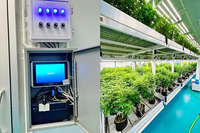 - ห้องปลูกกัญชาแนวตั้ง (ชั้นวาง) มี 3 ห้อง แต่ละห้องมีต้นกัญชาประมาณ 680 ต้น ผลิตได้ 45-60 กก. / รอบ / ห้อง