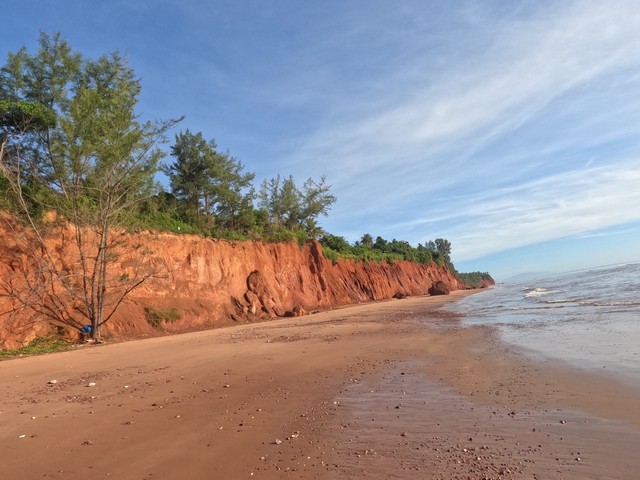 ที่ดินอยู่บนผาฝั่งแดง มีทางลงหาดได้หลายทาง มีทางลงธรรมชาติ แบบ ปีน ป่าย ตรงหน้าที่ดิน ผาตรงนี้ไม่สูงมาก ผาจะออกแนวลาดๆสูงประมาณ 10 เมตร สามารถทำทางลงไปหาดได้ ผานี้มีความยาวประมาณ 5-6 กิโลเมตร