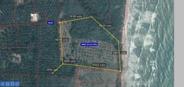 เนื้อที่ 19 ไร่ 3 งาน หน้ากว้างด้านทะเล 106 เมตร ขายราคาไร่ล่ะ 3 ล้านบาท