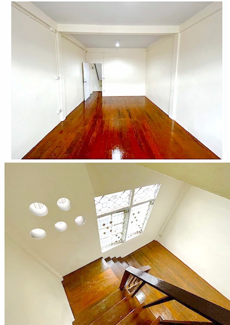 - ชั้นล่าง เป็นห้องโถงใหญ่เพดานสูง สามารถประกอบกิจการได้ มีที่จอดรถด้านหน้า