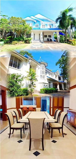 Pool Villa Mega Bangna 900m. 4 luxury mansions in the same fence 792 Sq.wa. 2,122 Sq.m. fully furnished with swimming pool shady and cool atmosphere16 bed 20 bath Ikea Bangna 1 km. Bangna shopping area can do Airbnb, accommodation for large families, business district tourist attractions Thai-Chinese International School 2.4 km. For rent 599,999 b-m for sale 200 million baht convenient transportation MRT Sri Lasalle 5.2 km.