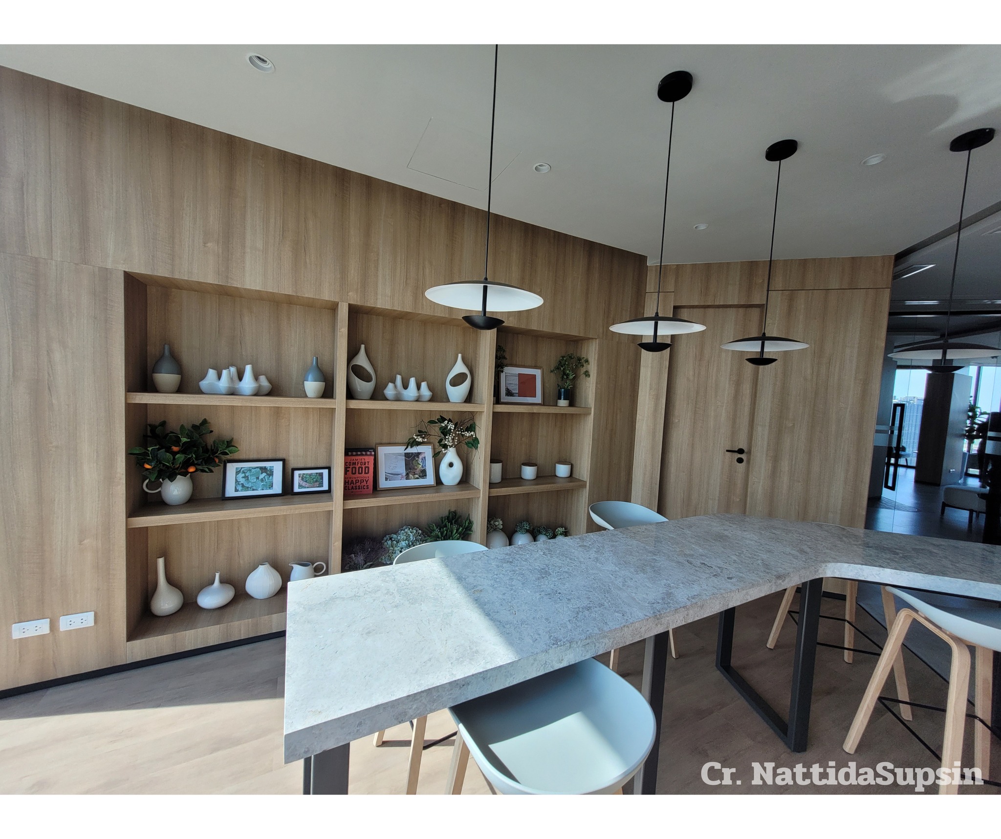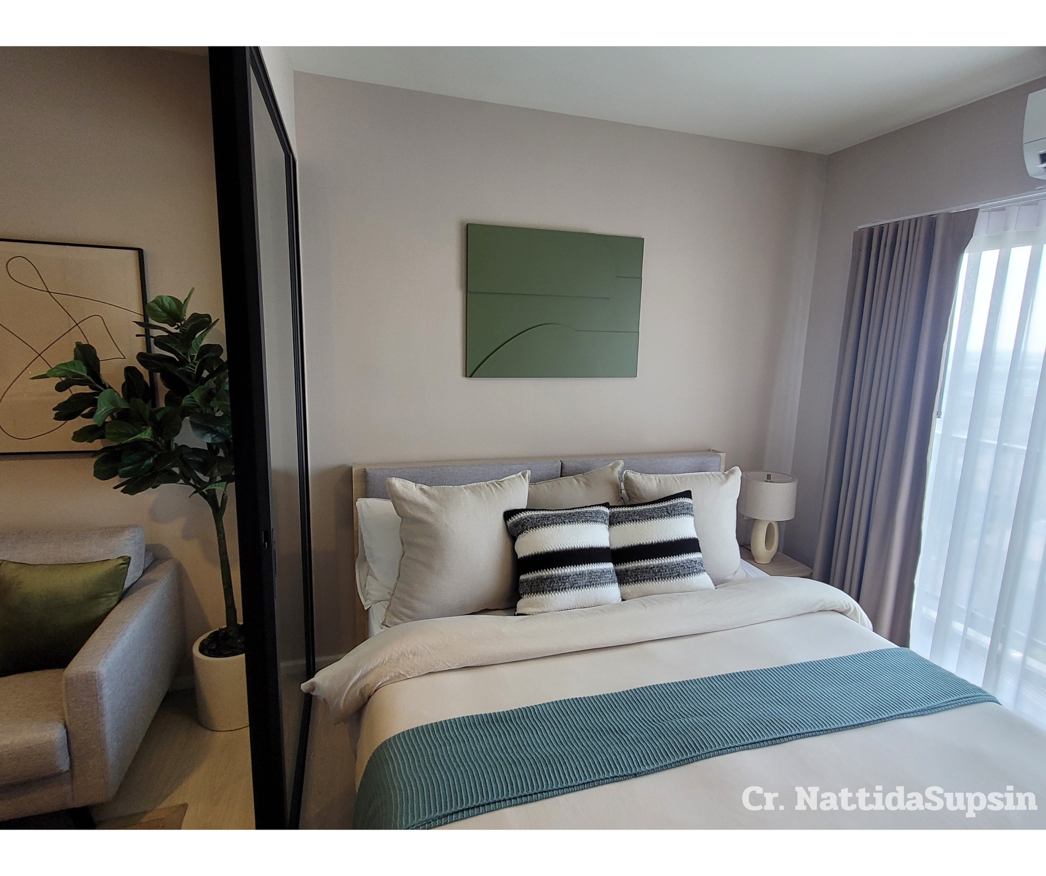 - 1 ห้องนอน 1 หน้องน้ำ ขนาด 28.52 ตร.ม. เพดานสูง 2.60 เมตร ให้ความรู้สึกโปร่งสบาย