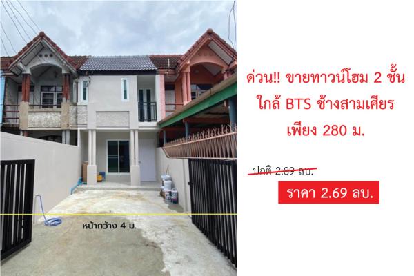 ด่วน!! ทาวน์เฮ้าส์ ซ.อุดมเดช ติดรฟฟ สถานีช้างสามเศียร 280 ม. 2.69 ล. (ฟรีโอน)