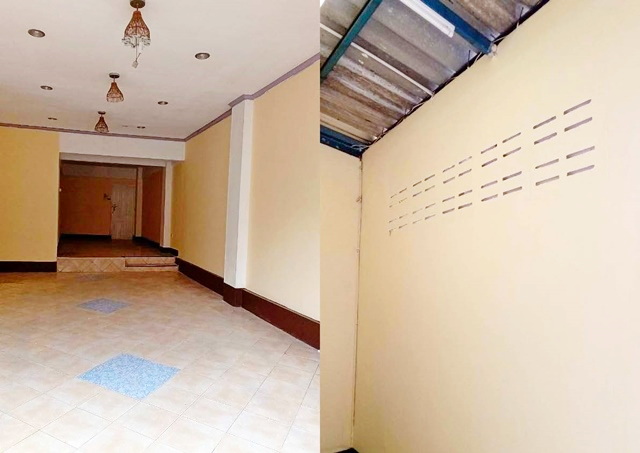 - มีถังเก็บน้ำและปั๊มน้ำ ชั้น 2 และ 3 ปูกระเบื้อง กั้นห้อง ทำเป็นห้องน้ำในตัว