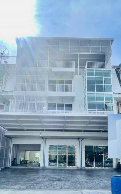 ด้านหน้าตึก ติดถนน 4 เลน อาคารรีโนเวทใหม่ทั้งหลัง ทาสีใหม่ ปูกระเบื้องใหม่