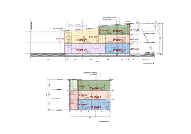 รวม พื้นที่ใช้สอยออฟฟิศ 534 ตารางเมตร / พื้นที่ใช้สอยโกดังคลัง 711 ตารางเมตร