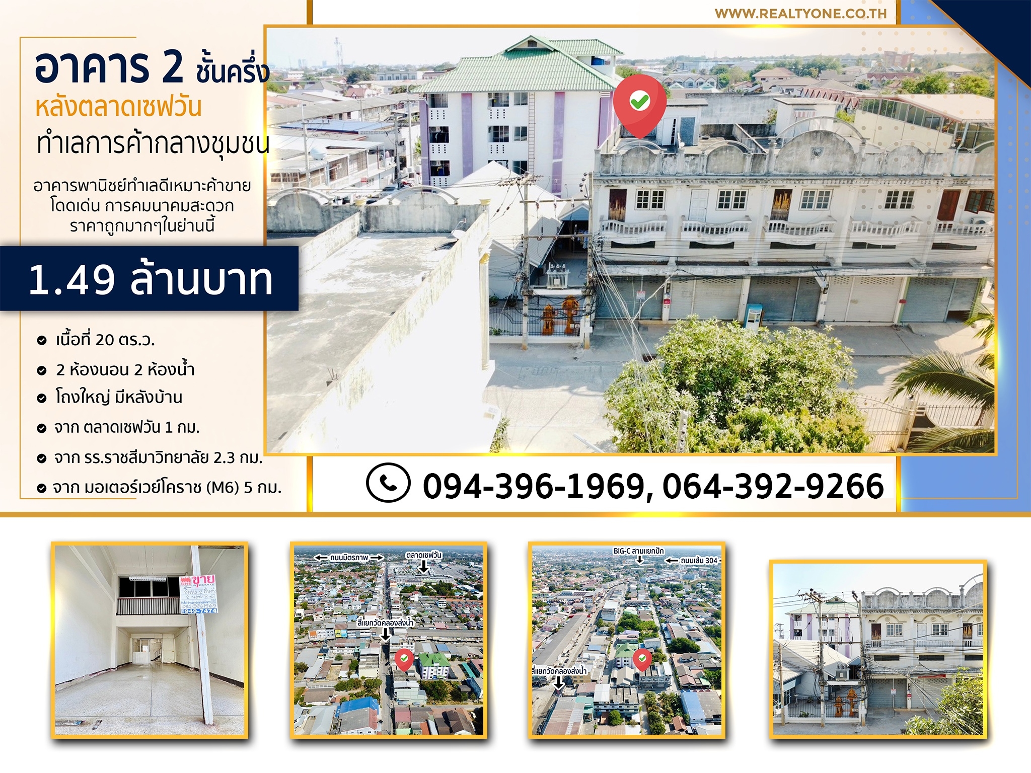 Quote from realtyone2 realtyone2 on 03/02/2025, 2:43 pmขายอาคารหลังเซฟวัน 2ชั้นครึ่ง ทำเลค้าขาย