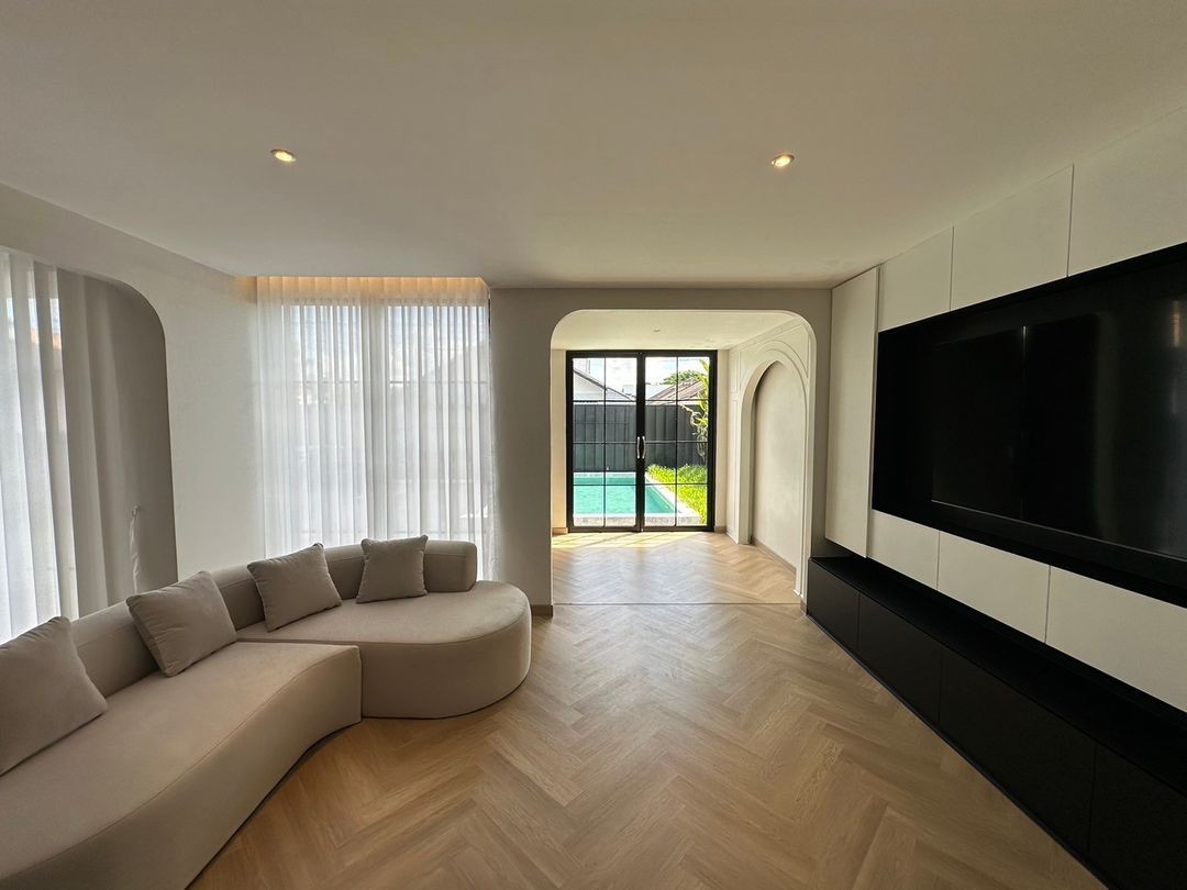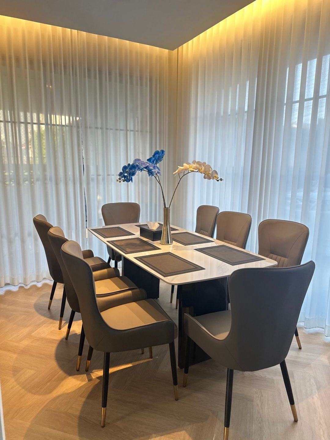 บิ้วอิน เคาน์เตอร์ครัว ไอส์แลนด์พร้อมติดตั้งฮุ้ดดูดควัน ตู้หน้าทีวี โซฟา โต๊ะอาหาร