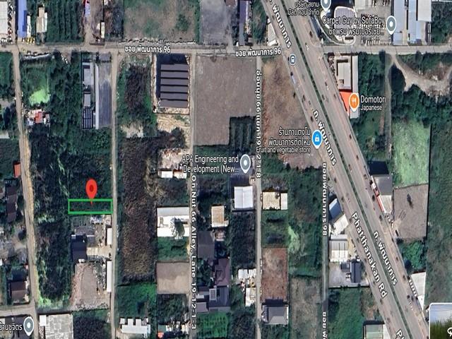 ขายที่ดิน 118 ตรว. ซอยพัฒนาการ 96 (พัฒนาการตัดใหม่) แปลงสี่เหลี่ยม เข้าซอยไม่ลึก เดินทางสะดวก
