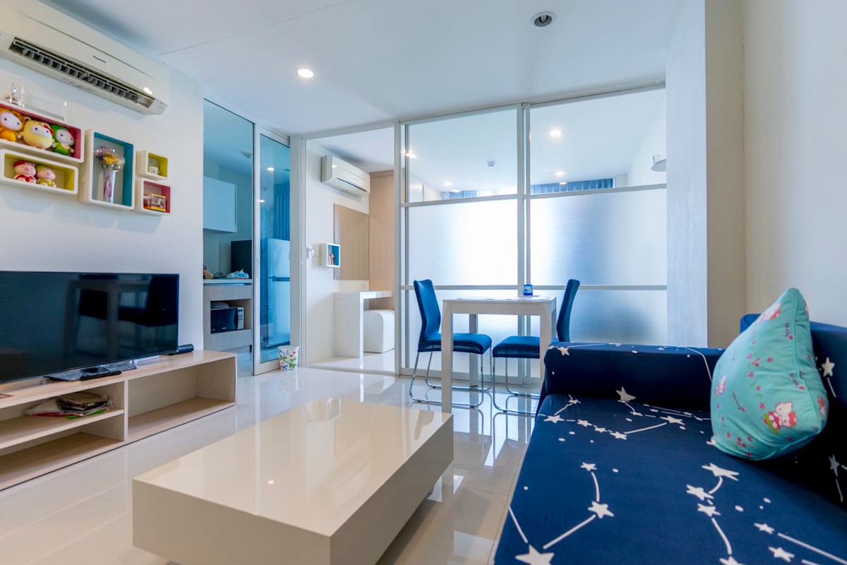 คอนโดมิเนียมสไตล์รีสอร์ท ใจกลางศรีนครินทร์ ร่มรื่นกับพื้นที่สีเขียวภายในโครงการ เดินทางสะดวก เพียง 130 เมตร สู่ซีคอนสแควร์ แนวรถไฟฟ้าสายสีเหลือง รอบๆโครงการจะมีร้านค้า ร้านอาหารอุดมสมบูรณ์ ห้องขนาด 37 ตร.ม. เฟอร์นิเจอร์ เครื่องใช้ไฟฟ้าครบ ตกแต่งพร้อมอยู่ หิ้วกระเป๋าเข้าอยู่ได้เลย ห้องครัวปิด แยกจากห้องนอนห้องนั่งเล่น ทำอาหารได้สบาย ตัวห้องอยู่ตึก 6 เงียบสงบเป็นส่วนตัว