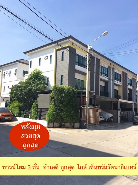 หลังมุม ทาวน์โฮม หลังมุม หน้าเซ็นทรัล รัตนาธิเบศร์ ใกล้รถไฟฟ้าสายสีม่วง