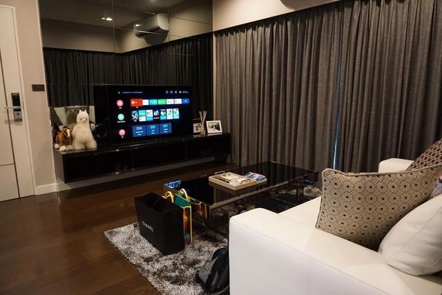 - ห้องนั่งเล่นโซฟาขนาดใหญ่(2แสนบาท)พร้อมทีวี SONY OLED 65 นิ้ว ด้านหลังตกแต่งด้วยหินแท้ขนาดใหญ่แผ่นเดียวไม่มีรอยต่อ