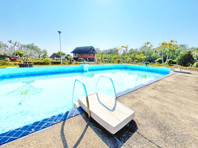 large land with swimming pool 3Rai Tube Trek Waterpark Chiang Mai 2.46 km. SanKamphaeng mountain view Art Gallery Ban Sathien Elephant Park 3.4 km. For rent large Thai-style wooden house 2-storey single-storey concrete house 4,850sq.m. Mill Hill International School 9.7km. 4bed 3bath 59,998B-M good air fresh atmosphere quiet suitable for a vacation home a place to relax, do spa or a resort. Shopping area: Mae Khu Market 4.7km. Convenient transportation