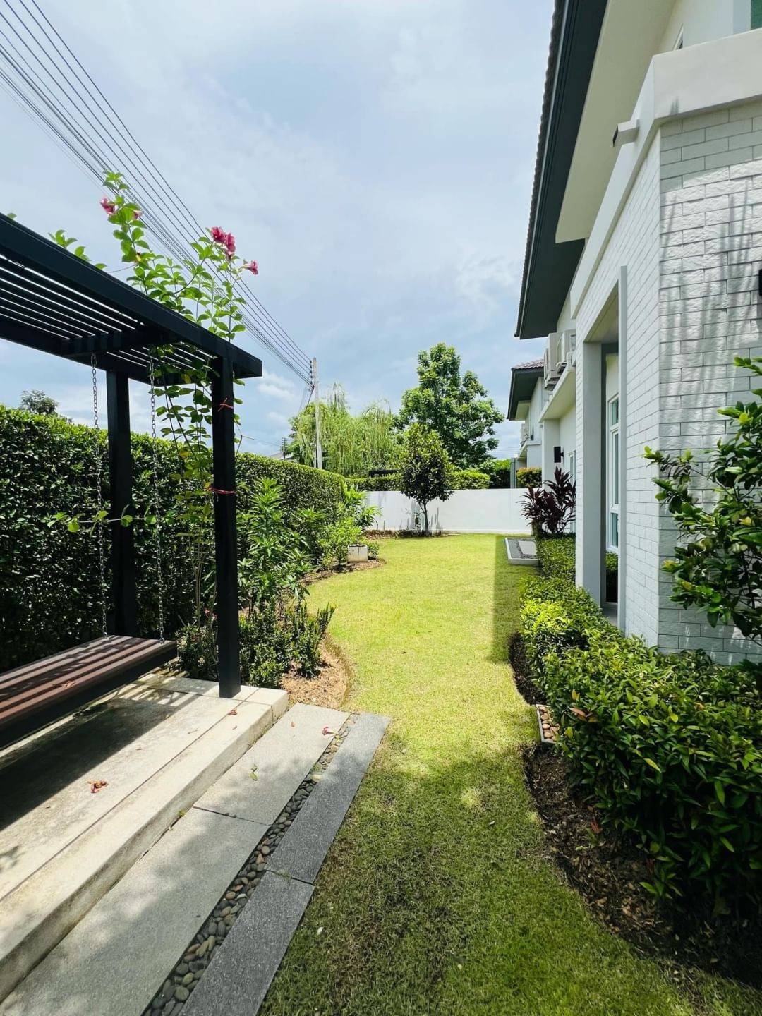 บ้านเดี่ยวในชุมชุนสังคมคุณภาพ โครงการแบรนด์หรู แลนด์แอนด์เฮาส์ในเชียงใหม่ หนึ่งเดียวในย่านสันทรายที่มีความหรูหรา และมีความเป็นส่วนตัว ปลอดภัย มีรั้วรอบขอบชิต มีสนามหญ้าในบริเวณตัวบ้านสามารถมองเห็นสนามหญ้าสนามเด็กเล่นฟิตเนส และสระว่ายน้ำของชุมชุน หน้าบ้านไม่ติดใคร