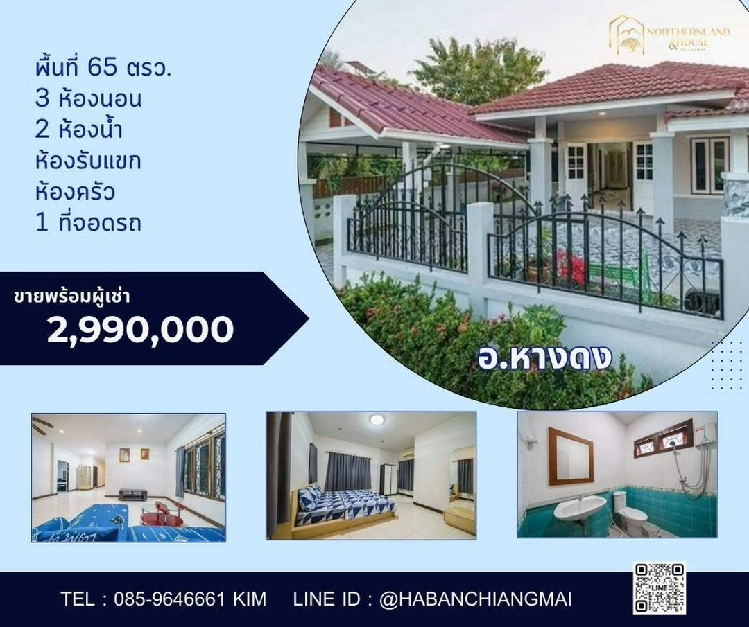 รับนายหน้า #ขายพร้อมผู้เช่า 2.99 ล.เท่านั้น #รับรายได้เดือนละ15,000 บาท #โซนหางดง #หลังกาดฝรั่ง #บ้านสวยสไตล์รีสอร์ท #รีโนเวทใหม่ ทำเลดี เดินทางสะดวกสบาย บ้านกว้างขวาง บรรยกาศดี เงียบสงบ #ซื้อปุ้ปรับรายได้ทันที