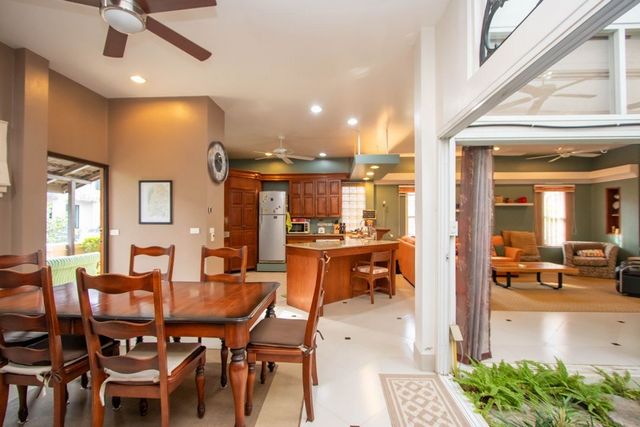 ห้องนั่งเล่น ห้องรับประทานอาหาร และห้องครัวแบบเปิดโล่งกว้างขวาง