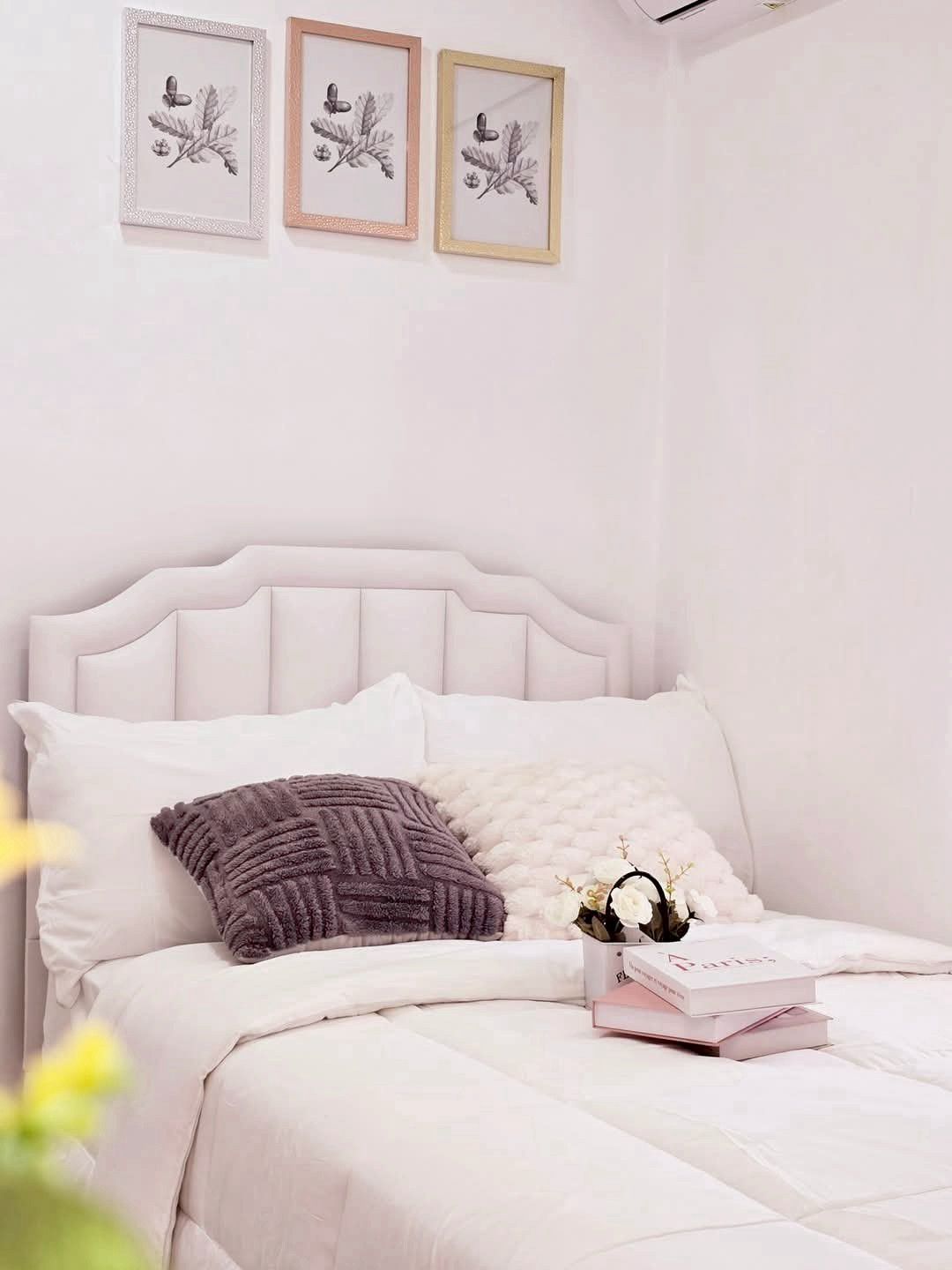 เตียง 5 ฟุต (ห้องใหญ่) / เตียง 3.5 ฟุต (ห้องเล็ก) พร้อมชุดเครื่องนอน