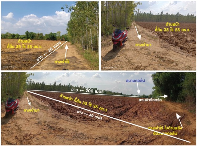 (1.) ที่ดินโฉนดครุฑแดง, น.ส. 4 จ.) ขนาดที่ดิน หน้ากว้าง 122 ม. X ลึก 468 ม. (โดยประมาณ)