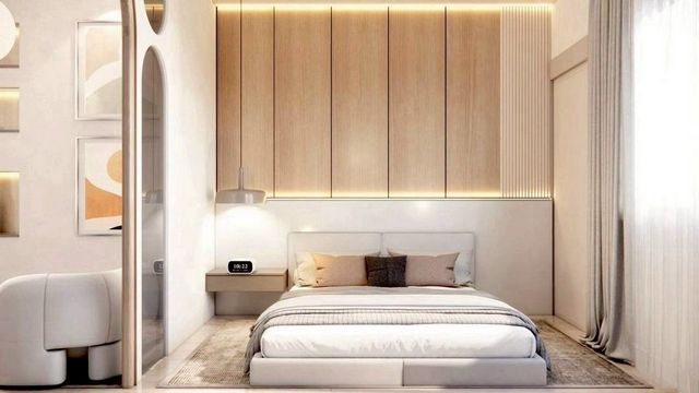 พื้นห้องนอนและห้องนั่งเล่นปูด้วยแผ่น SPC อย่างดี (กันน้ำ ทนทาน)