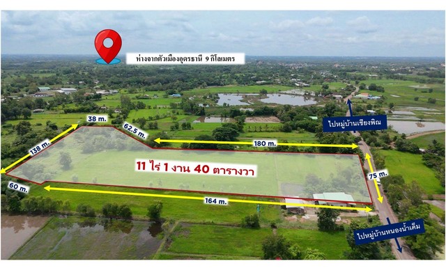 ขาย ที่ดิน 11 ไร่ 1 งาน 40 ตารางวา บ้านเชียงพิณ (ใกล้ตัวเมืองอุดรธานี)