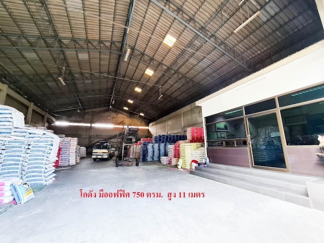 พื้นที่ 750 ตรม สูง 11 เมตร ประตูโกดังกว้าง 7 เมตร สูง 7 เมตร
