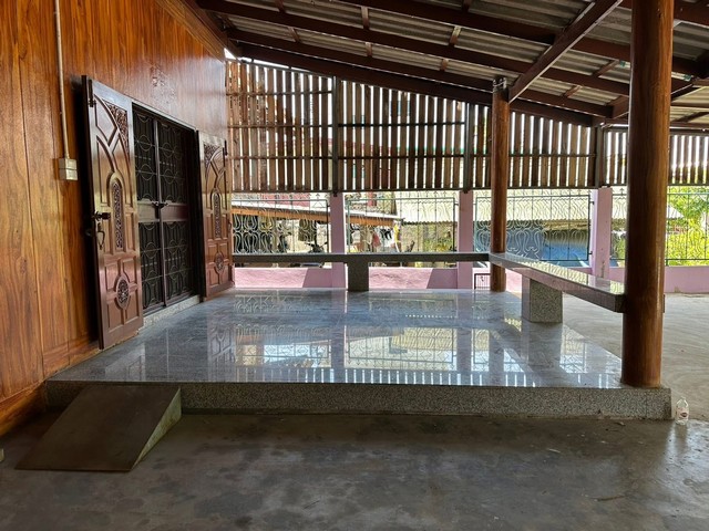 บ้าน 2 ชั้น ชั้นล่างเป็นปูน ชั้นบนเป็นไม้