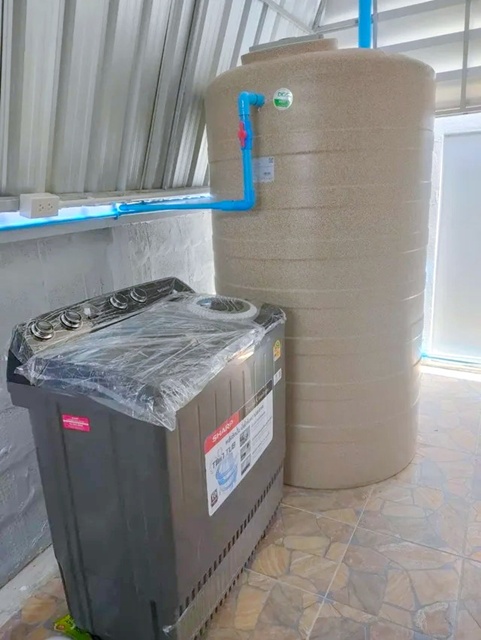- ถังเก็บน้ำ + ปั๊มน้ำ
