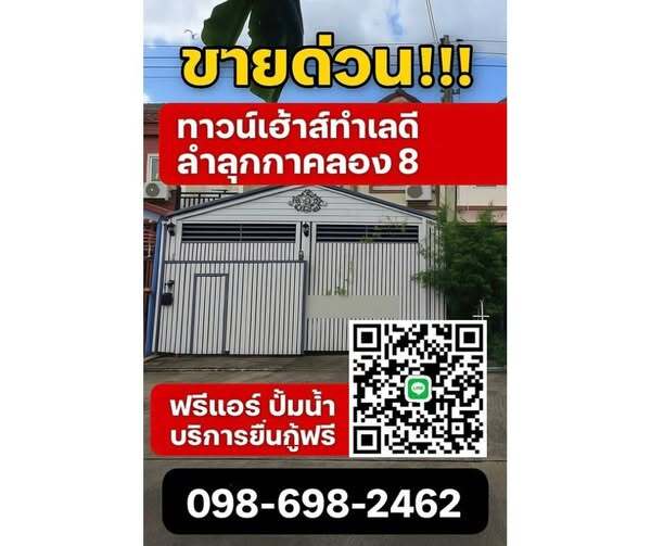 ขายด่วน! ทาวน์เฮาส์รีโนเวทใหม่ ตกแต่งพร้อมอยู่ ทำเลทอง กรีนการ์เด้นท์โฮมลำลูกกาคลอง 8