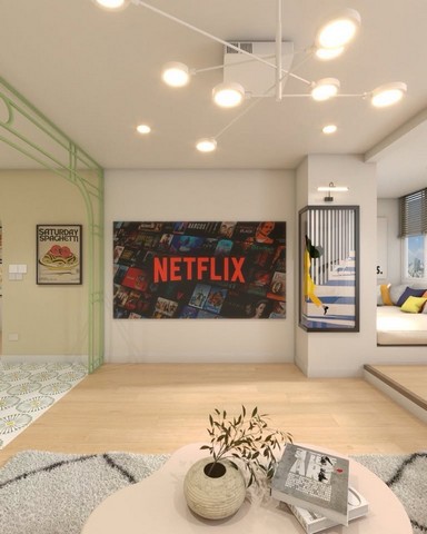 1 ห้องนั่งเล่นขนาดใหญ่ พร้อมโซนทำงาน