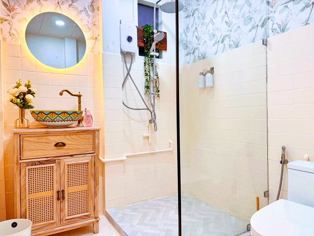 - ห้องครัวพร้อมอุปกรณ์ครบ: เตา, ตู้เย็น, ไมโครเวฟ