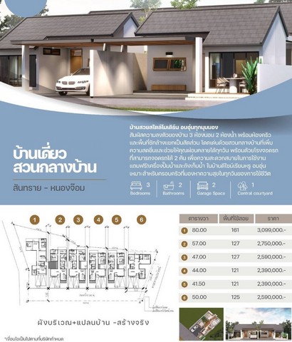 ขายบ้านใหม่ชั้นเดียว พื้นที่ 44-50 ตรว.